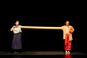 With a simple prop—a tube—the performance questions how we use time and space. The tube becomes a symbol, seeking to shorten the distance and break the fourth wall, opening an authentic dialogue with the audience.