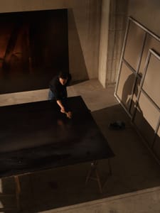 British painter Richard Zinon uses broad, gestural brush strokes to draw attention to the action of painting itself, placing this at the centre of his works. These movements across the canvas, reminiscent of Japanese calligraphy, succinctly transmit the pure action and energy of Zinon’s artistic process and the joy found in these acts of creation. Zinon uses a restricted palette, placing dark hues to explore the subtleties of light and colour. His large-scale, abstract paintings are devoid of figuration or complex reference. Through the direct but contained strength of the brushstrokes, Zinon conveys pure emotion.