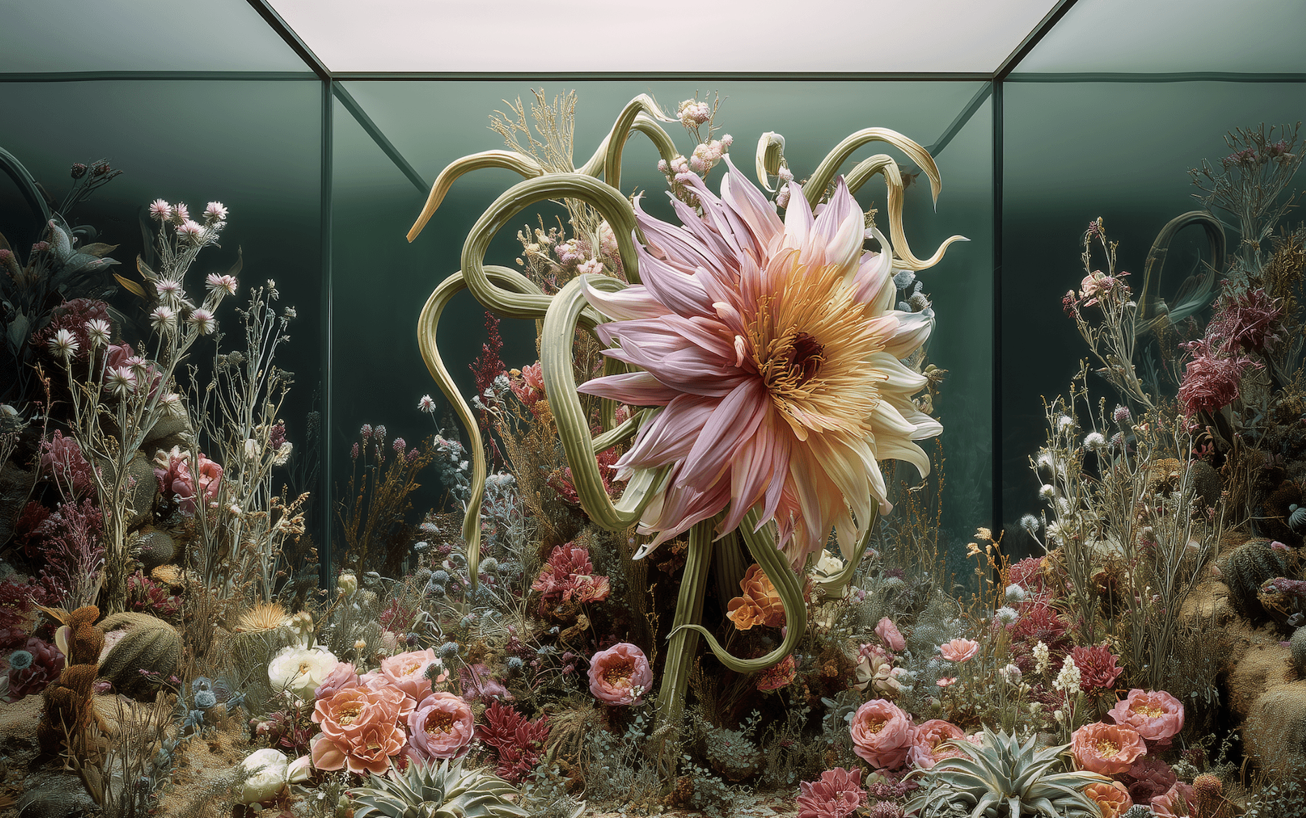 Thomas Zangaro Studio, in collaboration with Red-Eye magazine, is hosting Lorenza Liguori's ‘Flos Aliena’ at the third edition of the now traditional ‘FineSettimana’ event. The installation explores the transformation of empty space into a living, evolving landscape. In a minimalist setting, “alien” floral forms and plant life gradually colonise the transformation of empty spaces into a landscape, evoking a process of rebirth in which architecture, nature and artificial intelligence interact to generate unprecedented scenarios.