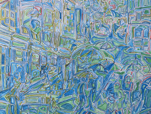 “Faces and landscapes in the city” brings into dialogue two complementary artistic perspectives on urban and inner space. Stefano Rosselli’s vibrant, layered landscapes transform views of the city and its architecture into dynamic visions, where color and line work guide the spectator’s eye.