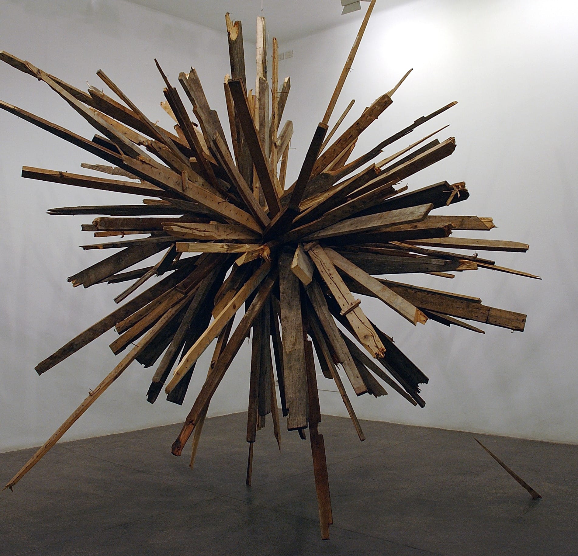 Peter Belyi, Silence, 2009, legno riciclato, installazione site-specific. Photo credit Galleria Giampaolo Abbondio