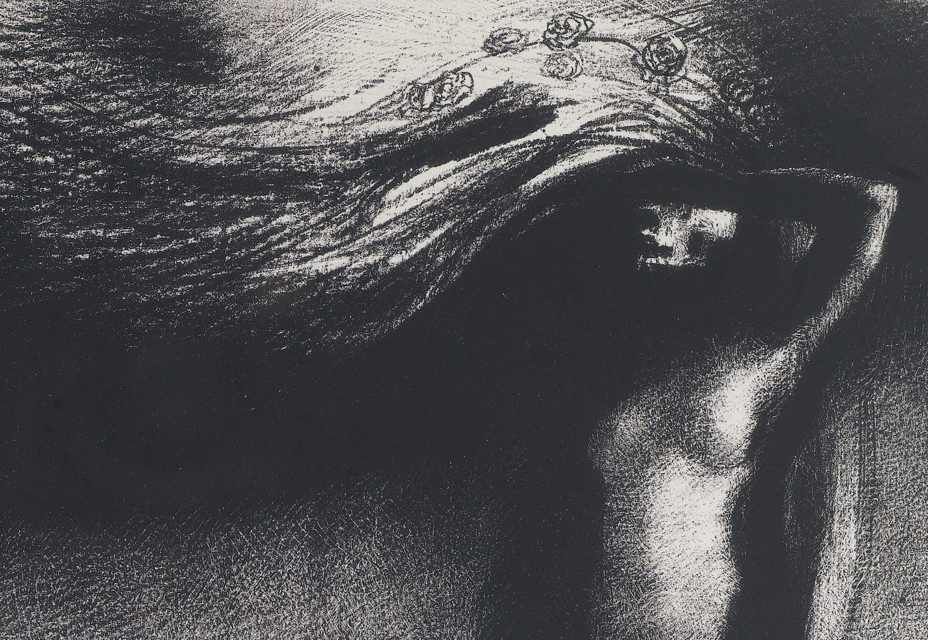 Odilon Redon, La Mort (dettaglio), Six dessins pour la Tentation de Saint-Antoine, edizione di 60 esemplari, 1889, litografia su chine collé, 44.9 × 31.5 cm